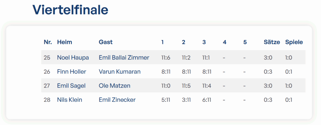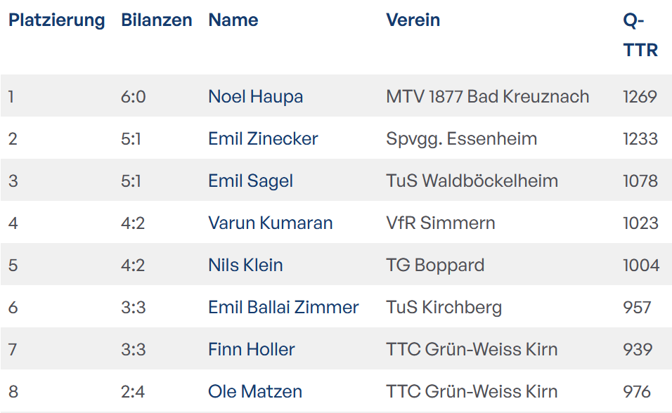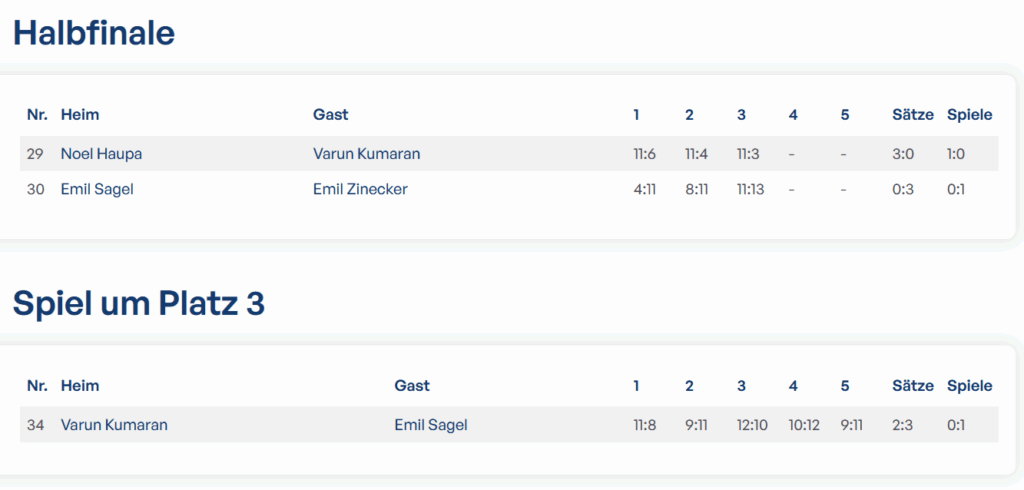 In Sohren fanden am 9. November 2025 die Bezirkseinzelmeisterschaften Jugend Süd für den Nachwuchs statt. Emil Sagel untermauerte seine gute Form bei den Jugend 13 und belegte den dritten Platz.